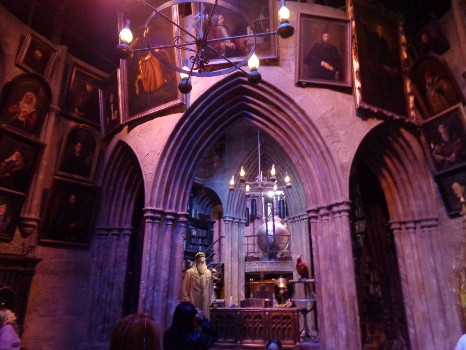 The Dumbledore’s office consisted of not one but three circular rooms, with each room separated by removable ‘wild walls’, allowing cameras to film from various angles. The walls of Dumbledore’s office are decorated with portraits of previous headteachers, and magnificent glass-fronted bookcases display an array of magical artefacts.