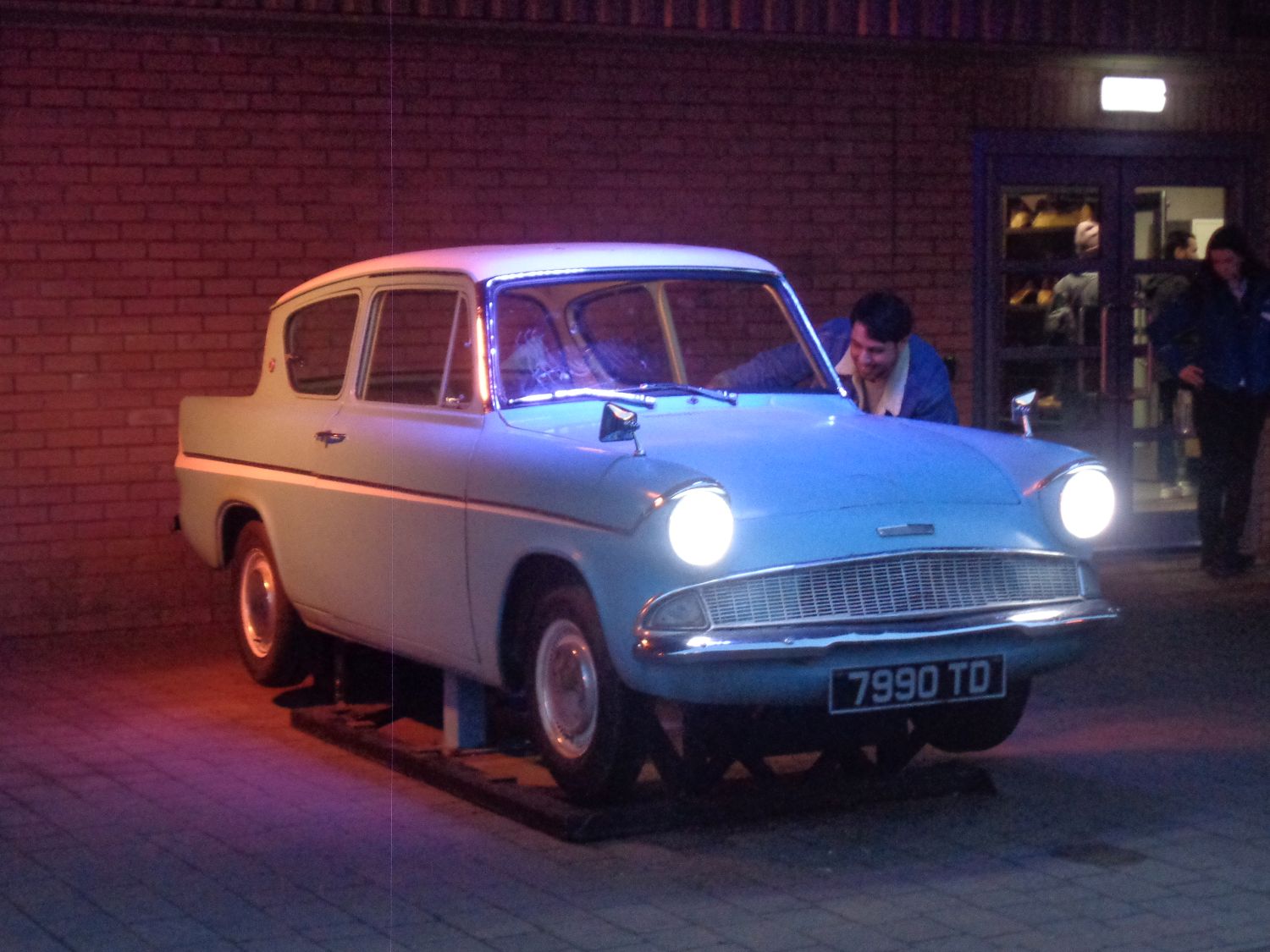 Arthur Weasley’s Ford Anglia is a blue Ford Anglia 105e Deluxe that has been magically modified to fly and become invisible. It can also carry ten people and six suitcases and doesn’t seem to need petrol. Ron, Fred, and George Weasley borrow their father’s flying car during the summer of 1992 to rescue Harry Potter from Number 4, Privet Drive. They rip the bars off Harry’s window before hoisting him into the car and flying off under the astonished gaze of the Dursleys. Harry and Ron are unable to get past the barrier to Platform 9 ¾, which Dobby has blocked to prevent Harry from returning to Hogwarts. Ron suggests that Harry take the flying car to school by following the train above. Upon arriving at Hogwarts, the car begins to show signs of weakness and crashes into the Whomping Willow. The car then decides to take refuge in the Forbidden Forest.