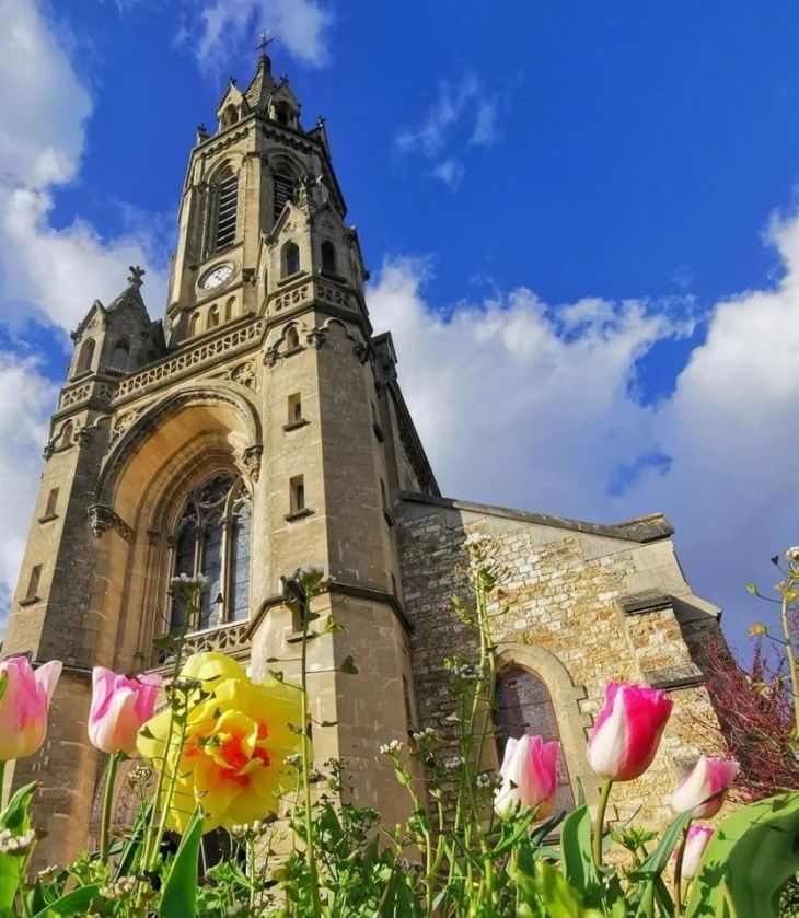 A bit of history I like tell us that the Canon Charles Boissis was commissioned in 1894 to build a new church, which he did without delay, as the foundation stone was laid in 1897. The blessing of the Church Saint Antony of Padua took place in 1900, three years before the bell tower was completed. It must be said that Pope Leo XIII wished to promote in France the veneration of the saint who had traveled the country in the 1220s. In 1896, the land for the church was acquired. On April 19, 1897, the foundation stone was laid. On November 18, 1900, the church was inaugurated and blessed. In 1903, the bell tower was completed. In 1906, the last stained-glass window was installed. In 1910, the portal tympanum was completed and the bells were blessed. The church was officially completed. In 1913, the installation of the two organs was completed.