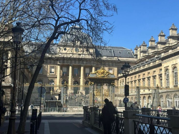 The Palais de Justice is located in the 1er arrondissement of Paris, on the Île de la Cité, with a footprint of approximately four hectares. It houses the Paris Court of Appeal, the Special Criminal Court (sensitive cases), and the Court of Cassation. It surrounds the Sainte-Chapelle, is adjacent to 36 Quai des Orfèvres, and is adjacent to the Commercial Court, the Police Prefecture, and the Paris Bar Association.
