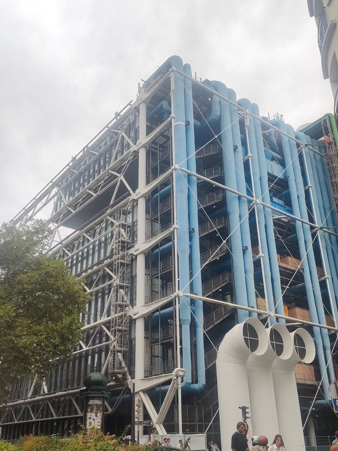 The Georges Pompidou National Center for Art and Culture (CNAC), commonly known as the Georges Pompidou Center, or Centre Pompidou or the Centre Beaubourg or simply the Beaubourg (see post) is a polycultural institution born from the will of the President. Georges Pompidou, a great lover of modern art, created in the heart of Paris an original cultural institution entirely devoted to modern and contemporary creation, where visual arts would be associated with books, design, music and cinema. It is located in the Saint-Merri neighborhood or quartier, in 4éme arrondissement or district of Paris. Within the National Museum of Modern Art / Center for Industrial Creation (MNAM / CCI), it has one of the world’s three largest collections of modern and contemporary art and the first in Europe. It also houses major galleries of temporary exhibitions, theaters and cinemas, and the BPI, the first public reading library in Europe. On either side of the square, two annexes house the IRCAM and the Brancusi workshop.