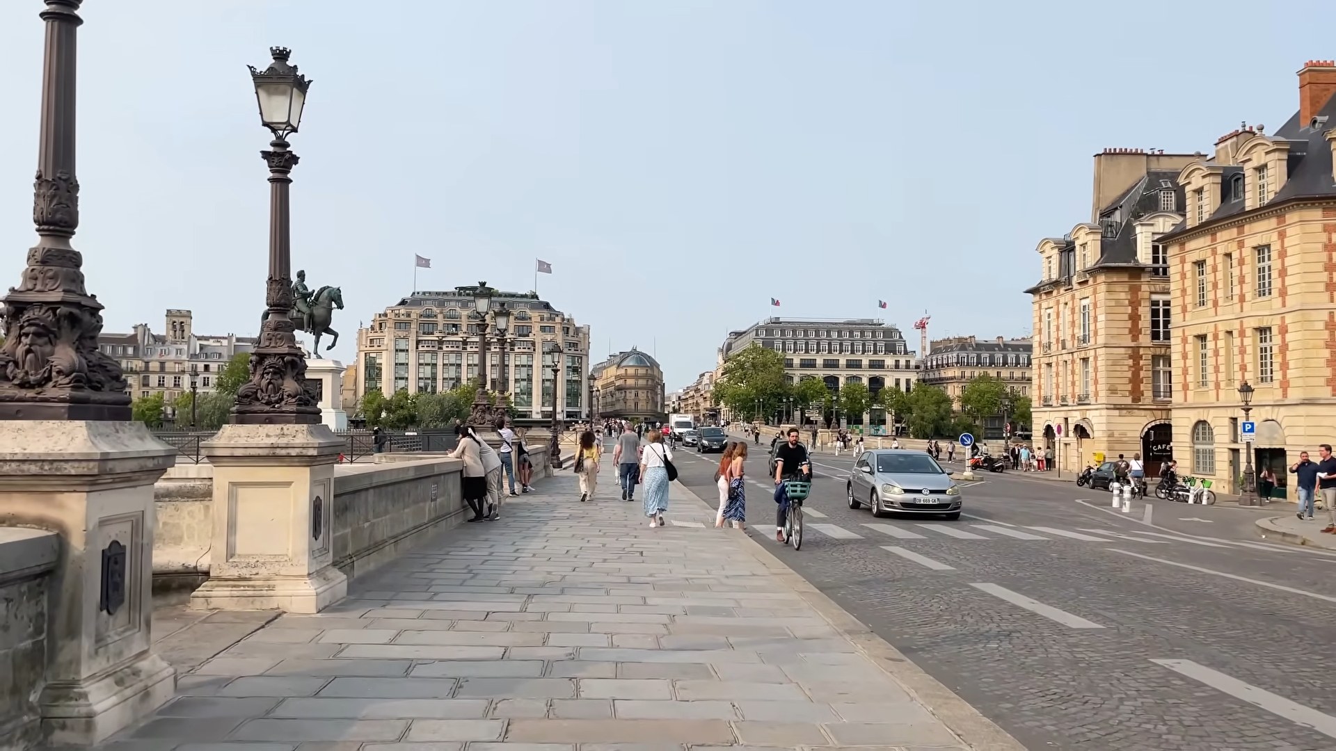 The Rue du Pont-Neuf is located in the 1er arrondissement of Paris, divided between the Les Halles quartier, and the Saint-Germain-l’Auxerrois quartier or neighborhoods. It was built in the second half of the 19C. It bears this name because it ends at the Pont Neuf.(see post), The street provides access to the Pont Neuf from the right bank to the south, and to the Forum des Halles from its other end to the north. The road continues from this end and becomes Rue Baltard, closed to motor traffic since the closure of the old Paris market halls, then Rue Montorgueil, Rue des Petits-Carreaux, Rue Poissonnière, and Rue du Faubourg-Poissonnière, ending at the Barrière Poissonnière. The current street is an important crossing point as it intersects several arteries such as the Seine quays, Rue de Rivoli, and Rue Saint-Honoré. There was previously an entrance to the Forum des Halles parking lot, now filled in and converted into a sidewalk. On June 21, 1854, a decree approved the plan for the restructuring of the central market halls. In 1867, the new road was named Rue du Pont-Neuf. Notable buildings here are at No. 1, at the corner with the Quai du Louvre: La Samaritaine department store. On the top floor, the Kong, a restaurant designed in 2003 by the designer Philippe Starck, whose glass roof is in line with Pont Neuf At No. 2, at the corner with the Quai de la Mégisserie: former site of the store À la Belle Jardinière (1867-1972), At No. 31: Molière is said to have been born in a house that stood on this site; a bust above an engraved inscription pays homage to him. No. 33: Au chien qui fume bar-restaurant , See on the Pont Neuf the equestrian statue of Henri IV, It was inaugurated in 1818. This bronze statue by the sculptor François-Frédéric Lemot represents Henri IV in armor, crowned with laurel and holding a fleur-de-lis scepter in his right hand. Henry IV looks towards the Quai des Orfèvres, while the horse looks towards the Quai de l’Horloge. It replaces a first equestrian statue from 1614, commissioned by Marie de Médicis and demolished in 1792, as well as a second temporary statue erected in 1814.