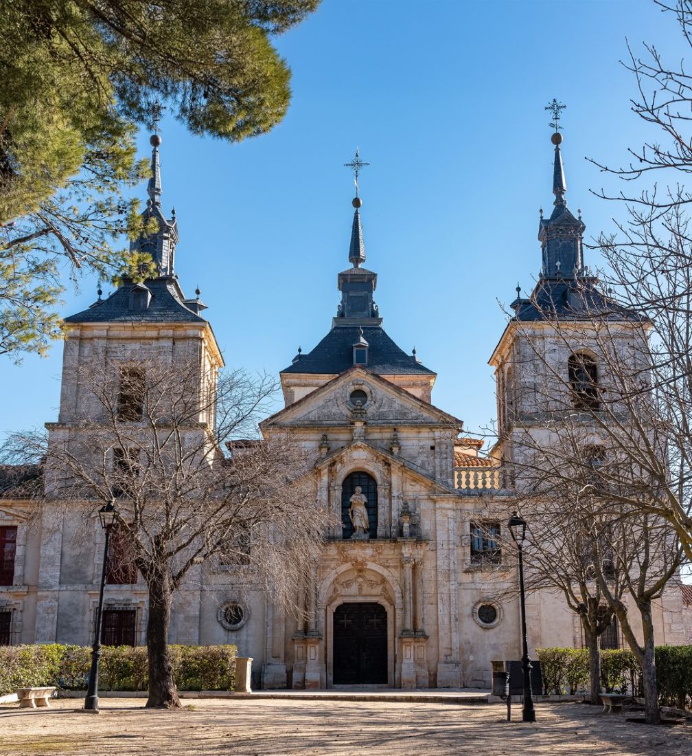 The interior stands out for its profuse decoration, especially with regard to the altarpiece of the main altar, presided over by the sculpture of Saint Francis Xavier the work of Churriguera himself. At the top, there is a medallion depicting the saint baptizing an unfaithful king, accompanied by two Indians. The choir is connected internally to the palace, allowing the Goyeneche family direct access to the church. The church houses Philippine ivory carvings from Goyeneche’s time, of great artistic quality. The most venerated is that of Cristo del Socorro, who presides over the Via Crucis of the Javierada, organized since 1977 by the Navarrese Commission in Madrid and sponsored by the Royal Congregation of San Fermín de los Navarros. Also worthy of note are a Saint John the Baptist, a Holy Family, and a Virgin and Child. In the church, which is in a very good state of preservation, religious services are held throughout the year, with the main liturgical solemnities being given special attention.