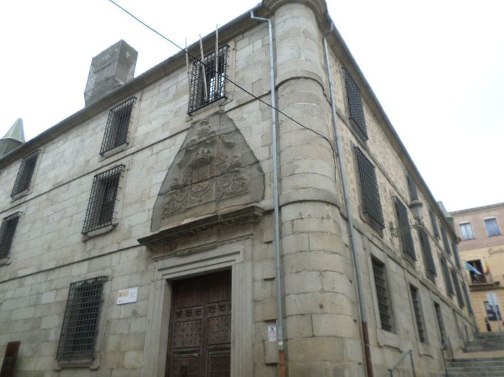 You go on calle Juan Bravo just before the Plaza San Martin see what was the Real Prisionor Royal Prison, The building we can see today is in the Renaissance architectural style. It was built between the 17C and 18C, replacing a Cistercian nunnery built at the end of the 10C and which was used as a prison shortly after its construction. The Romanesque doorway of a disappeared hermitage in the province dedicated to San Medel is preserved in the entrance hall. The building has three floors topped by a bell gable. Its decoration is very austere; it has a square floor plan with rooms organized around a small interior courtyard, highlighting the coat of arms of the Austrians that appears on the cover. It was the public prison of the city until the beginning of the 20C. The primitive prison had among its inhabitants the illustrious playwright Lope de Vega, imprisoned in the year 1577 and Fernando Delgado Sanz, aka El Tuerto de Pirón , a Spanish bandit much feared in his time who over time gained a reputation for being kind, so called because since he was a child he had a cloud over his eye that he covered with an eye patch. He operated mainly in the Sierra de Guadarrama and the basins of the Pirón and Lozoya rivers. Today the Casa de la Lectura – Biblioteca Municipal or House of Reading – Municipal Library with extensive reading and cultural programming.