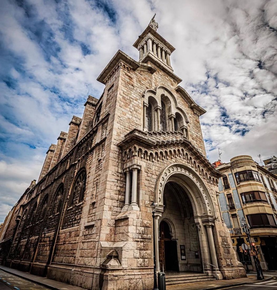 Passing in my road warrior mode by City center allow me to see some wonderful monument of which pictures were taken such as the basilica built in 1918 and nicknamed La Iglesiona or big church , The Basilica del Sagrado Corazon or of the Sacred Heart is at Calle Jovellanos, s/n. And was built between 1918 and 1922. It was done midway between the Gothic Revival and the Gaudi-influenced Modernism. This connection can be seen, first of all, in the interior. Designed for the Jesuit Fathers in 1911, the church’s interior layout uses solutions reminiscent of Gaudi’s work, specifically in the parabolic sections of the vault and the multi-lobed arches of the presbytery. The main façade, despite maintaining traditional elements such as the central rose window above the doorway, the gable, and the side towers, serves as a framework for a decorative design based on a marked contrast of light and shadow with an Expressionist tinge, visible especially in the towers. It was declared a Basilica in 2003.