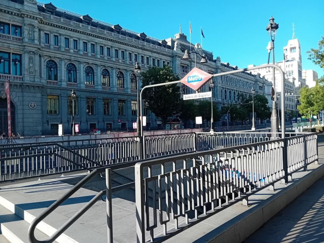 The metro Banco de España is located on line 2 under the Calle de Alcalà ,next to the Plaza de Cibeles, alongside the Paseo del Prado, between the neighborhoods of Justicia and Cortes in the district Centro. It serve as well the neighborhoods of Jéronimos in the district of Retiro, and Recoletos in the district of Salamanca. The station was opened on June 14 1924 with the first line going from Sol and Ventas. It has connection with start Las Rosas passing by stations Retiro and Sevilla,and ends at Cuatro Caminos, Access on the vestibulo Cibeles lobby Banco de España Calle de Alcalà 48 next to Paseo del Prado. To the City hall of Madrid,Banco de España,Museo Naval (navy),Museo del Prado, Museo Thyssen-Bornemisza and Museo de Artes Decorativas, Also by Palacio de Buenavista Calle de Alcalà 51 out to the Ejército de Tierra (army hq), Vestíbulo Barquillo lobby : By Marqués de Cubas, Calle de Alcalà 46 corner with Calle del Marqués de Cubas), by Barquillo out Calle de Alcalà 47 corner with Calle Barquillo,