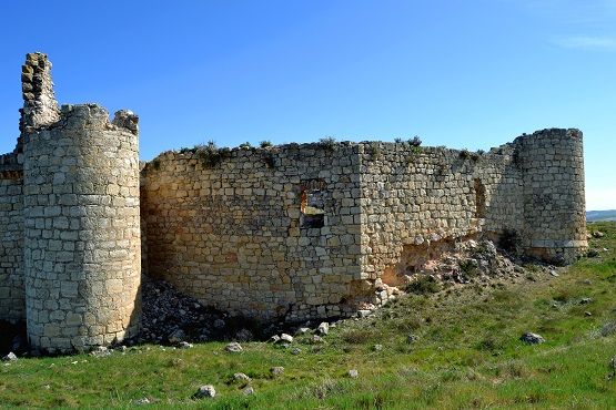 We do not know which was the first castle built on this site, located so close to the Roman Segóbriga and so close to a ford over the Cigüela river that it had a Roman bridge to cross it ,and still preserved , it is thought that a fortification could have been built on this property at the end of the 12C or beginning of the 13C, by the Order of Santiago to protect both the road or ravine that ran through said pass over the Cigüela river and to protect this pasture of great importance to the commandery of Uclés (see post). A later construction phase in the 16C involved the construction of the perimeter barrier adapted for artillery or the outer wall surrounding the castle to protect the original fortifications. This wall has a rectangular shape with four cubes located at each of its corners, extending in an irregular trapezoidal shape, resembling the projection of a pentagonal tower that existed within the enclosure. The smaller wall of the trapezoid is made up of two more cubes that defend the southern entrance gate. It should be noted that the aforementioned pentagonal tower no longer exists today.