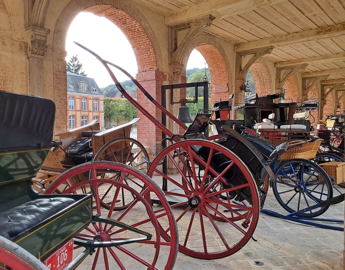 And my translation from the official site tells that the owner, in addition to offering rides to discover the animal park, exhibits the five carriages of the Luynes family. The Luynes family chose one of the most prestigious Parisian coachbuilders to order three exceptional carriages: Maison Morel. The cars featured a grand gala coupé, a gala carriage, and a hunting break. Luxuriously adorned, these carriages were large and reached the pinnacle of perfection: adorned with coats of arms and trimmed with rich trimmings, they rivaled one another in elegance. The coats of arms of the Dukes of Luynes can be seen not only on the doors but also on the handles. A d’Orsay coupé, from a London manufacturer, completes the ensemble.
