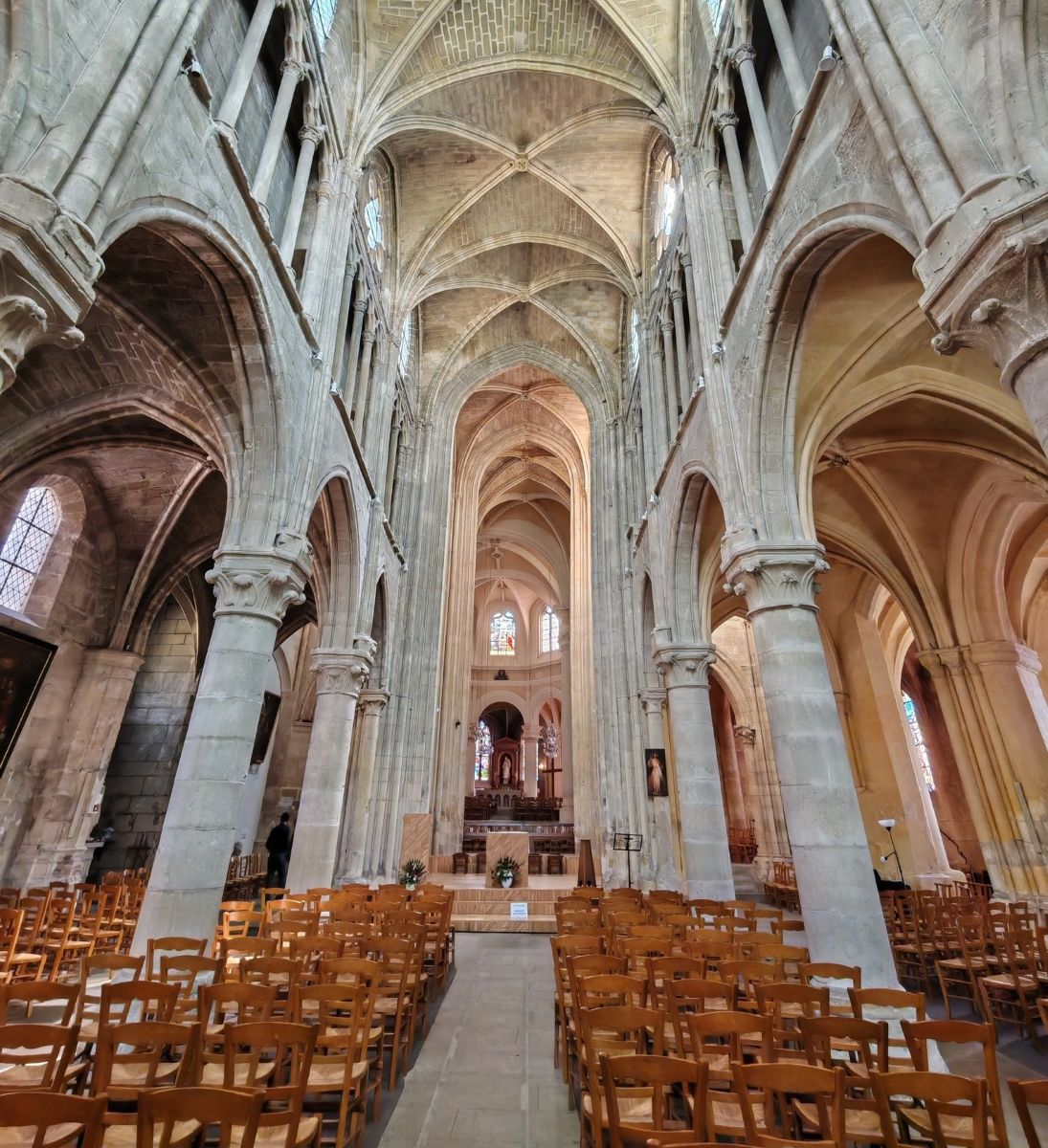 The Church Saint Martin, begun under Saint Louis in the mid-13C, rises on the foundations of an older religious building, as evidenced by the discovery of Merovingian sarcophagi that can be admired at the Museum of National Antiquities in Saint-Germain-en-Laye (see post). Of this original construction, the nave and its two side aisles, the transept, and the two bays leading up to the choir remain.
